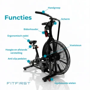 Haal alles uit je thuisworkouts met de FitFirst AirBike X-55 – een robuuste en veelzijdige AirBike die perfect past bij elke fitnessliefhebber, van beginner tot doorgewinterde sporter. Met een stil ontwerp, 7 ingebouwde trainingsprogramma’s en compatibiliteit met de populairste trainingsapps zoals Kinomap, Zwift en FitShow, biedt deze airbike een intensieve full-body training zonder gedoe. Combineer hem met jouw motivatie en begin vandaag nog aan je fitnessreis met FitFirst!