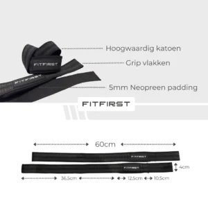 Geef je training een boost met gym straps! De gym straps van FitFirst zorgen voor een sterke grip, ontlasten je onderarmen en helpen je om extra herhalingen of gewicht toe te voegen aan je workouts. Ze zijn perfect voor deadlifts, pull-ups, barbell rows, shrugs en meer. Wil jij het maximale uit je krachttraining halen en voorkomen dat je grip je in de steek laat? Bestel dan vandaag nog gym straps bij FitFirst!