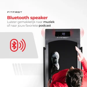 Met een trainingsapp op je iPhone of Android-telefoon kun je eenvoudig deze FitFirst loopband koppelen en bedienen. Zo stel je je persoonlijke doelen in en kies je uit een breed scala aan trainingsprogramma’s die aansluiten bij jouw wensen en conditie. Tijdens je training kun je bovendien je voortgang real-time volgen via de app. De ingebouwde Bluetooth-speaker zorgt ervoor dat je kunt genieten van je favoriete muziek of podcast, zodat je elke workout nog leuker en motiverender maakt.